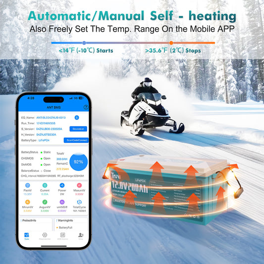 12V 200Ah Lithium Battery with 230A Smart BMS Self Heating LiFePO4 Battery 8000+ Deep Cycle Battery r Low Temp. Protection for RV, Solar, Marine, Camping, Off Grid Applications